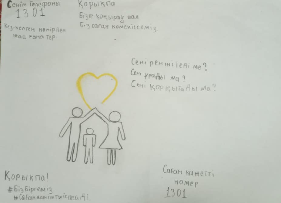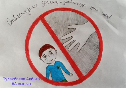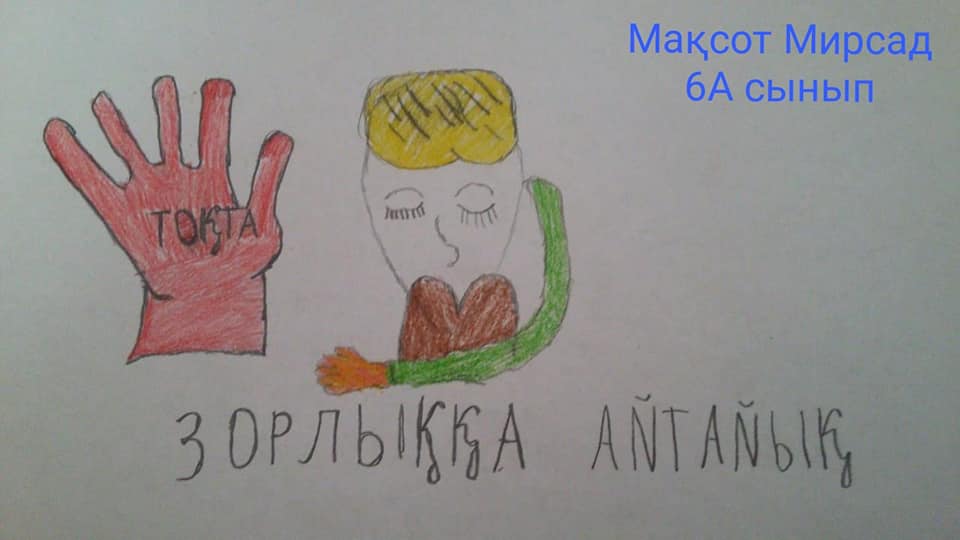 Республикалық "Зорлық-зомбылықсыз 16 күн" жоспарына сəйкес "Сəулет" мектеп-лицейінде "Зорлық-зомбылықсыз, қатыгездіксіз балалық шақ!"тақырыбында тəрбие сағатты өткізілді. Тəрбие сағаты барысында "Бала құқығы туралы конвенция", бала құқығы туралы заңмен таныстырылды. Əр баланың ата-ана, қоғам алдындағы міндеттері түсіндірілді. 5-7 сынып жəне 8-11 сынып оқушыларына мектептің əлеуметтік педагогы whatsapp желісі арқылы "Отбасылық қарым-қатынас" тақырыбында сауалнама жүргізді. "Бақытты отбасы", "Зорлық-зомбылыққа төтеп берейік" тақырыптарында оқушылар сурет салып, өздерінің отбасындағы бақытты сəттерін бейнелеп жəне зорлық-зомбылыққа, қатыгездікке қарсылықтарын суреттер арқылы жеткізді.
